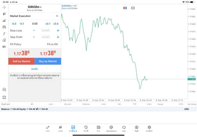 เทรด Forex GBPUSD 0.03 lot แอพ MT5 exness