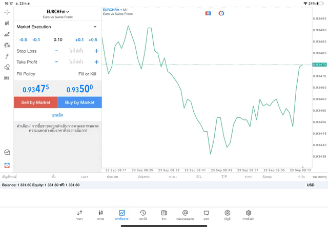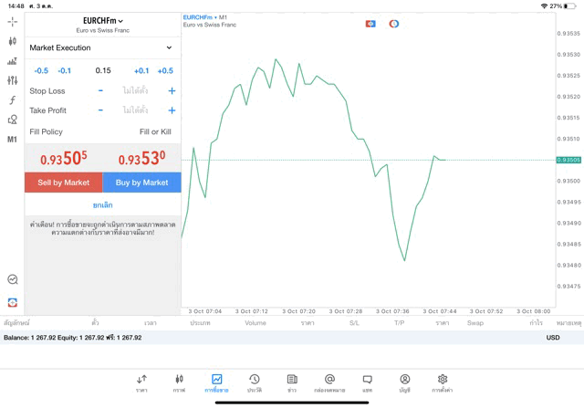 เทรด Forex EURCHF 0.05 lot แอพ mt4 exness