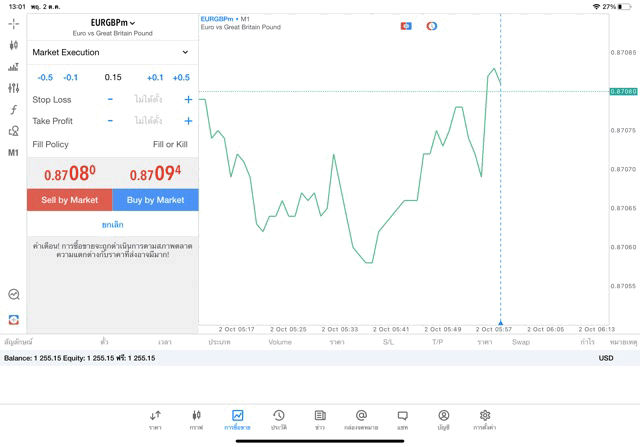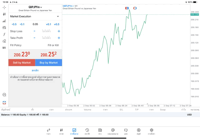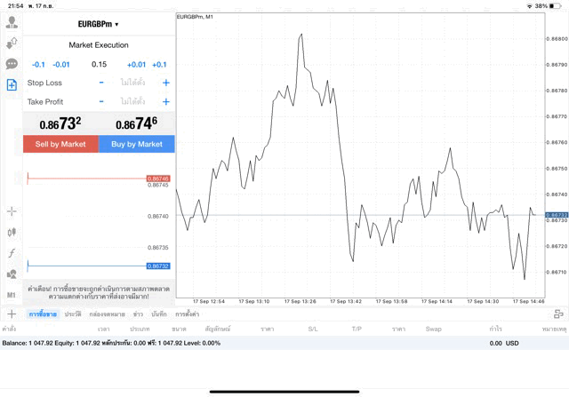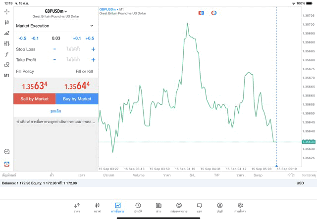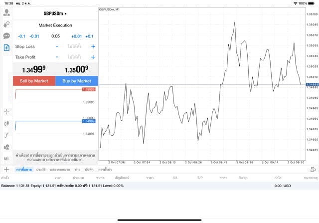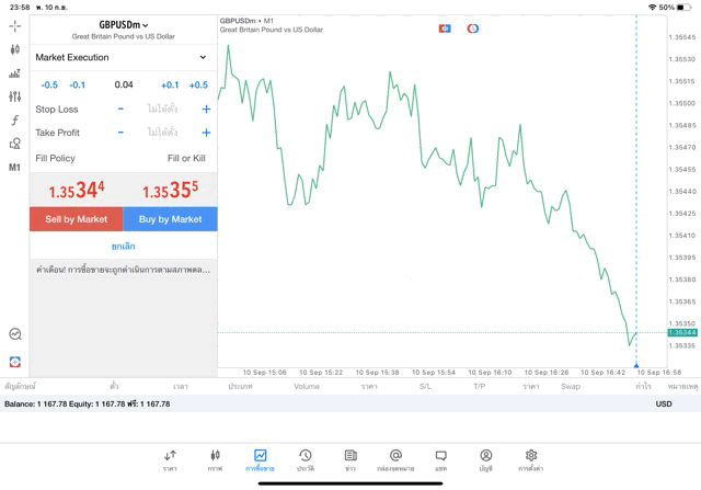 เทรด Forex GBPUSD 0.05 lot แอพ MT4 exness