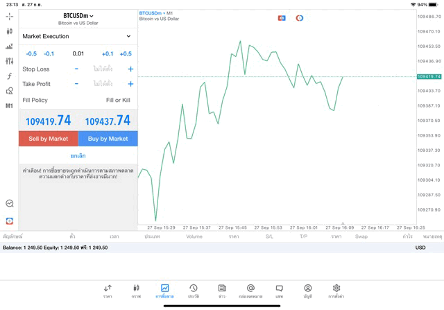 เทรด Crypto BTCUSD 0.01 lot แอพ MT5 exness