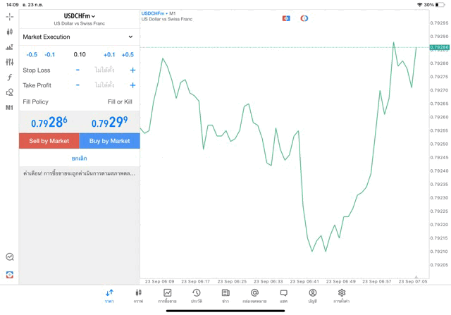 เทรด Forex USDCHF 0.1 lot แอพ MT5 exness