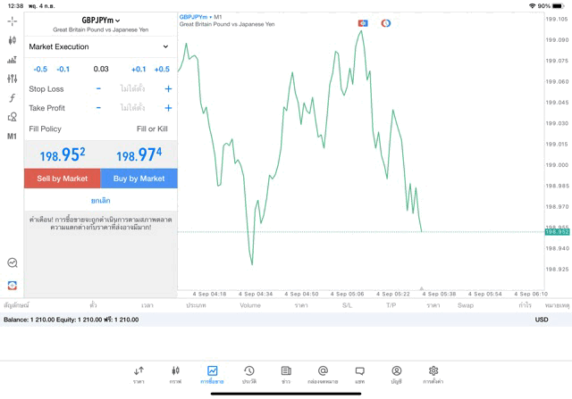 เทรด Forex GBPJPY 0.05 lot แอพ MT5 exness