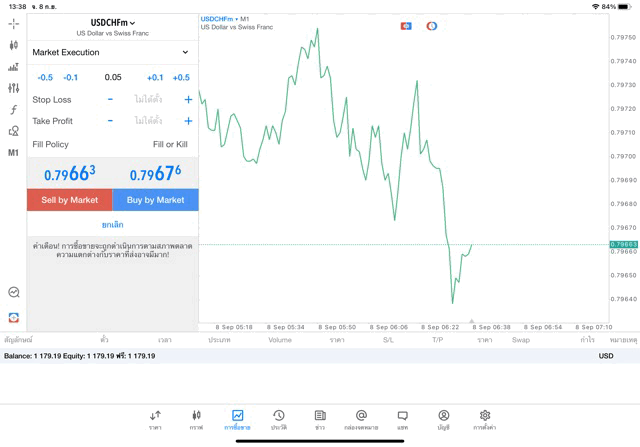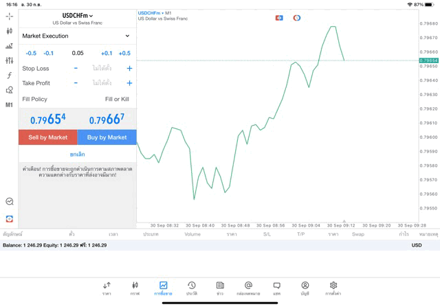 เทรด Forex USDCHF 0.05 lot แอพ MT5 exness