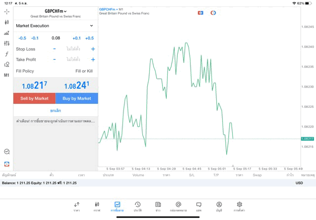 เทรด Forex GBPCHF 0.08 lot แอพ mt5 exness