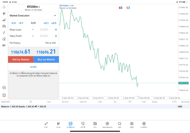 เทรด Crypto BTCUSD 0.01 lot แอพ mt5 exness