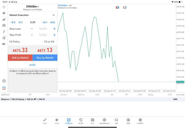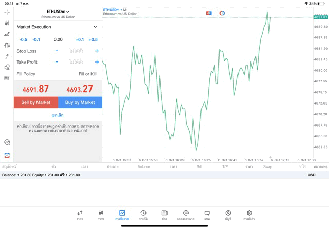 เทรด Crypto ETHUSD 0.2 lot แอพ MT5 exness