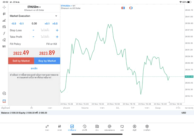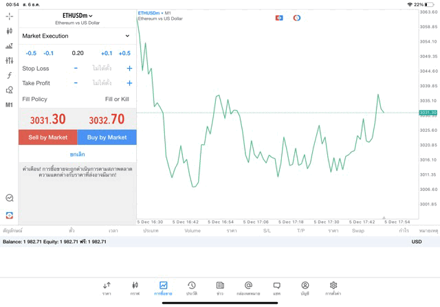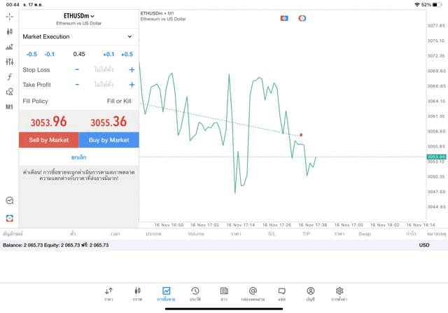 เทรด Crypto ETHUSD 0.3 lot แอพ MT5 exness