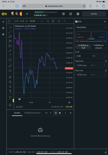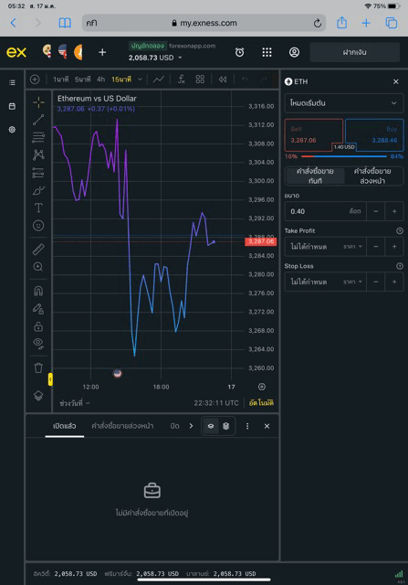 เล่น ETHUSD 0.4 ล็อต exness terminal