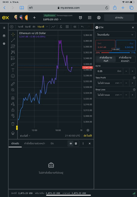 เล่น ETHUSD 0.25 ล็อต exness terminal