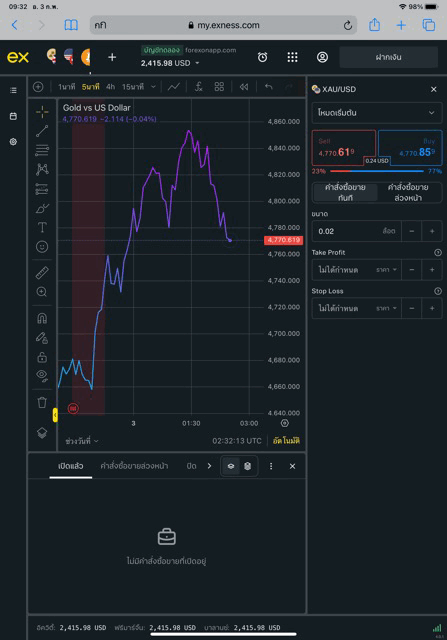 เล่นทองคำ 0.02 ล็อต exness terminal