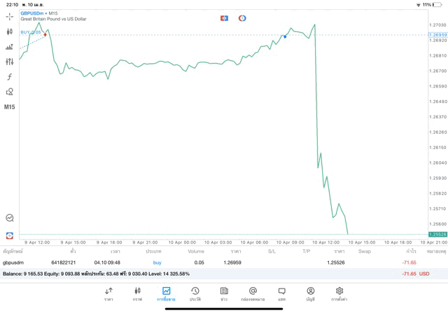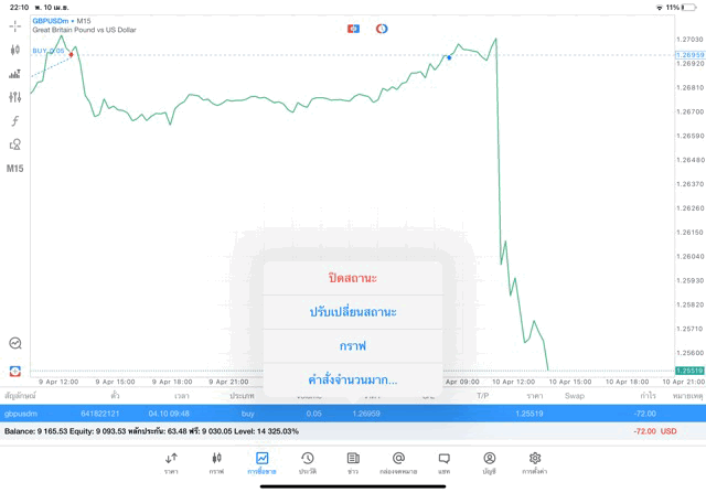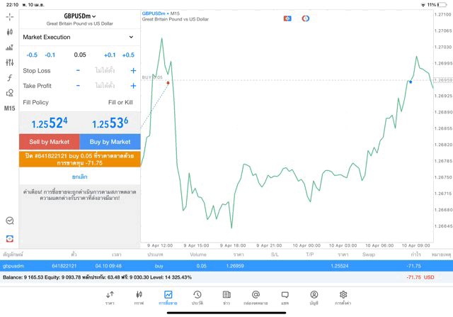 ติดลบก่อนนะ เริ่มแล้วการเทรด forex GBPUSD เมื่อเวลาผ่านไปราคาเปลี่ยนแปลงจะเกิดผลกำไรหรือการขาดทุน