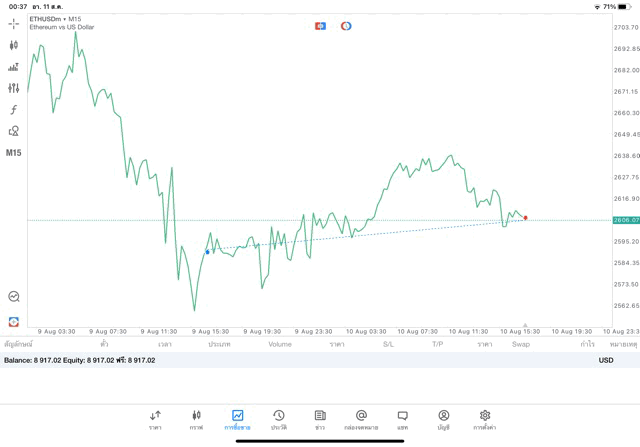 เริ่มแล้ว ติดลบก่อนนะ การเทรด Crypto ETHUSD บนแอพเล่นหุ้น mt5 exness เมื่อราคามีการเปลี่ยนแปลงจะส่งผลต่อกำไรหรือขาดทุนขึ้นกับการเทรดครั้งนี้