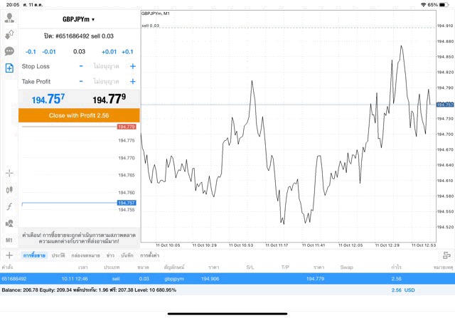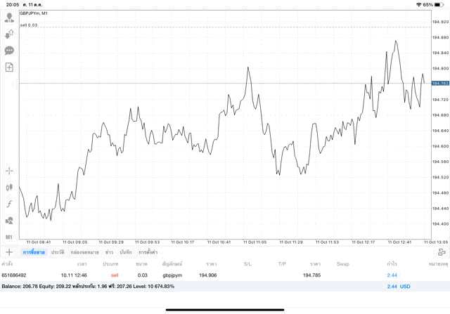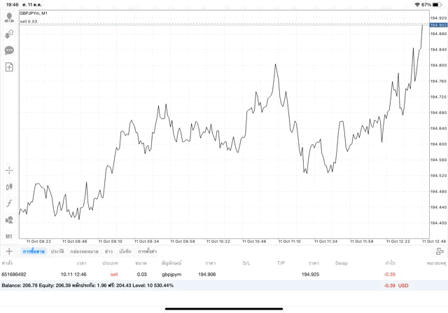 ติดลบก่อนนะ เริ่มแล้วการเทรด forex GBPJPY เมื่อเวลาผ่านไปราคาเปลี่ยนแปลงจะเกิดผลกำไรหรือการขาดทุนขึ้น