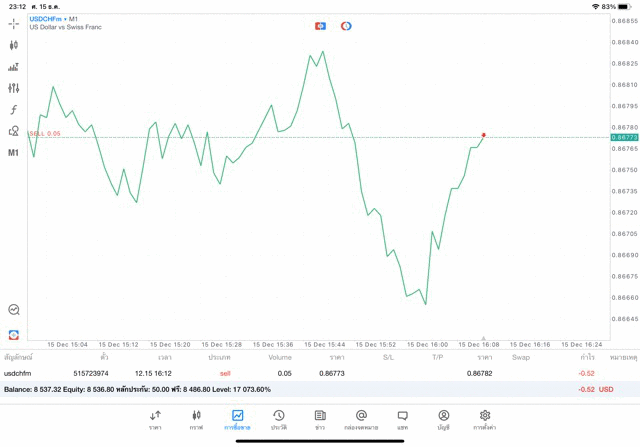 การเทรด Forex USDCHF 0.05 lot