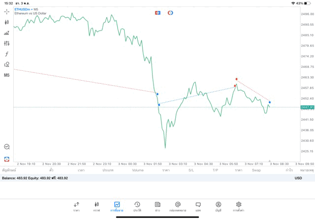 เริ่มแล้ว ติดลบก่อนนะ การเทรด Crypto ETHUSD บนแอพเล่นหุ้น mt5 exness เมื่อราคามีการเปลี่ยนแปลงจะส่งผลต่อกำไรหรือขาดทุนขึ้นกับการเทรดครั้งนี้