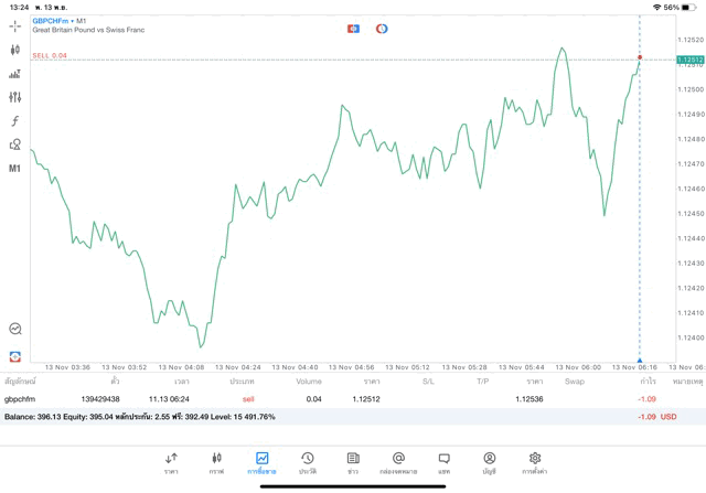 ติดลบก่อนนะ เริ่มแล้วการเทรด forex GBPCHF เมื่อเวลาผ่านไปราคาเปลี่ยนแปลงจะเกิดผลกำไรหรือการขาดทุน