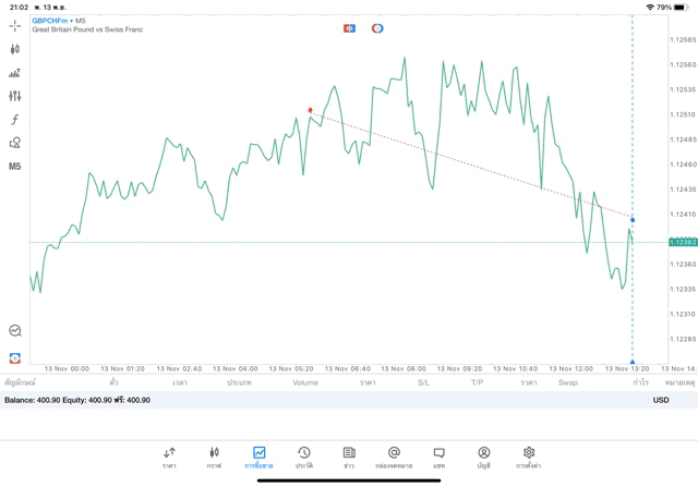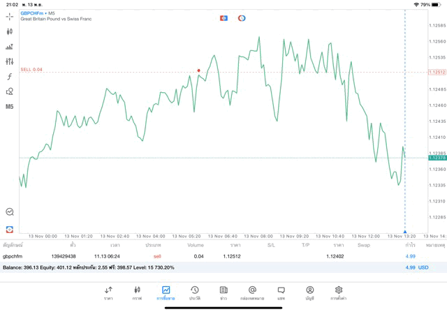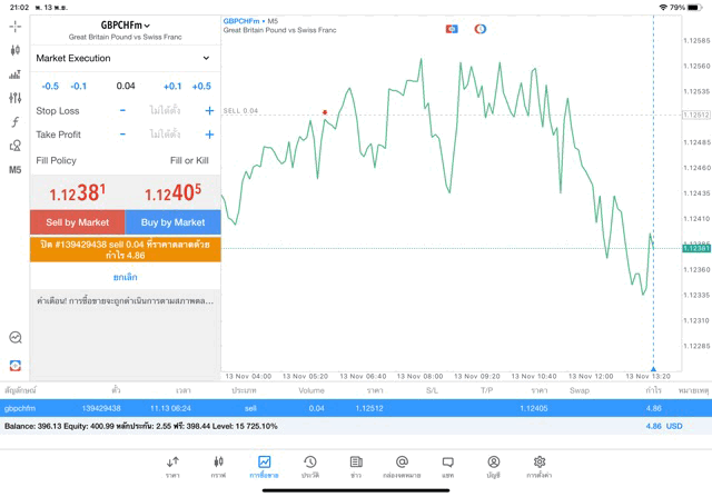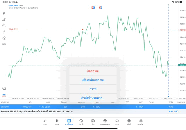 การเทรด Forex GBPCHF 0.04 lot แอพ mt5