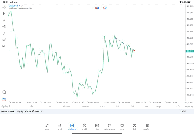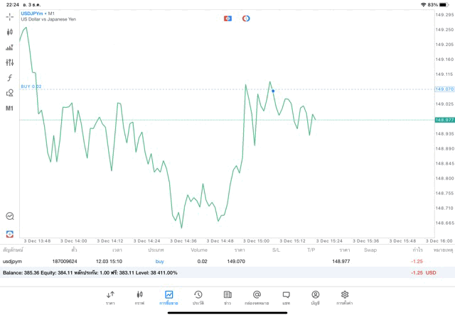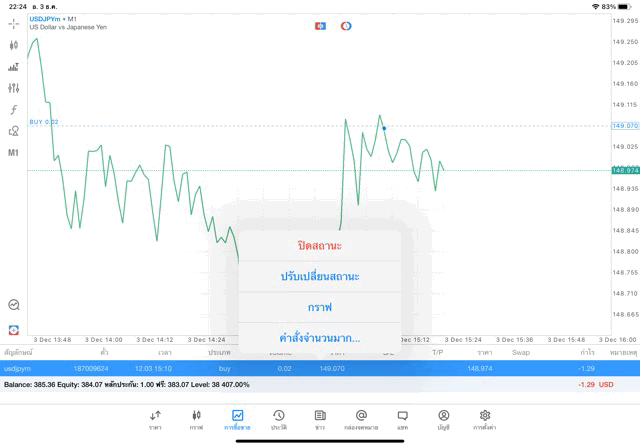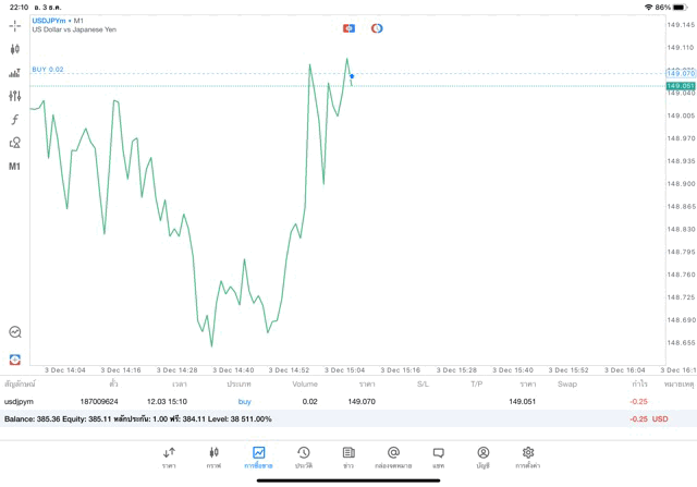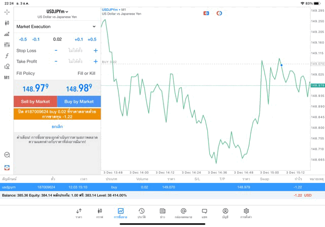 การเทรด Forex USDJPY 0.02 lot แอพ mt5