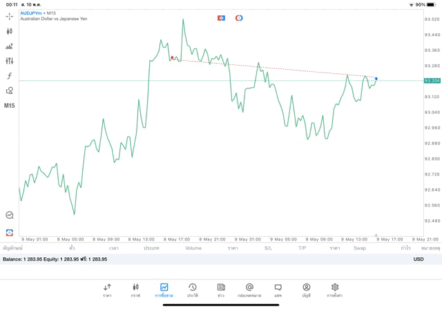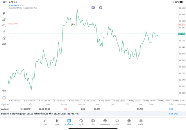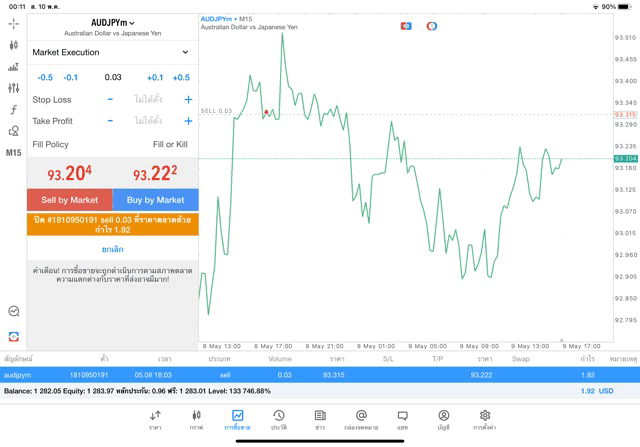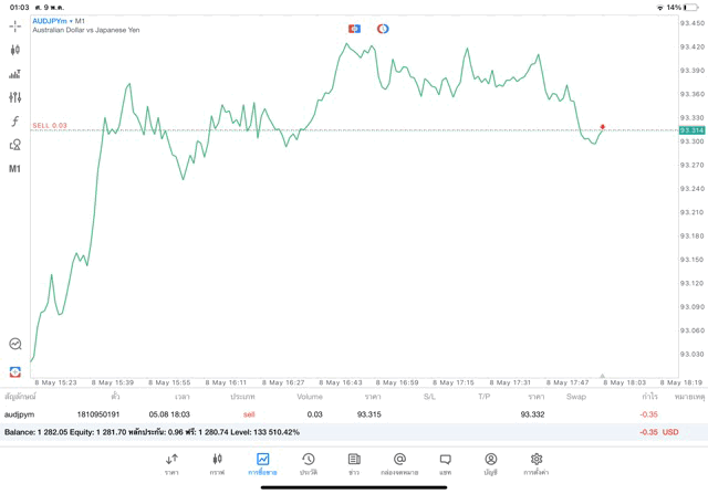 การเทรด Forex AUDJPY 0.03 lot แอพ mt5