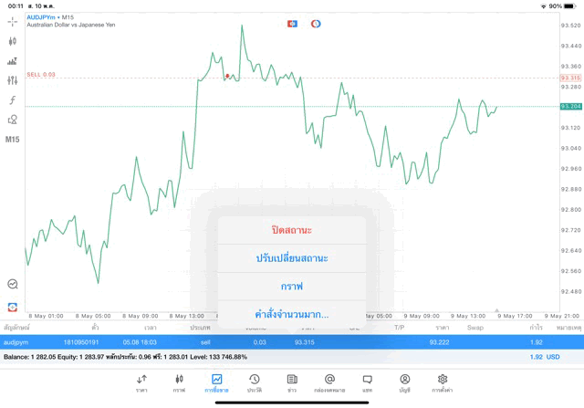 คลิ๊กค้างแล้วเลือกคำสั่ง ปิดสถานะ ปิดการซื้อขายครั้งนี้