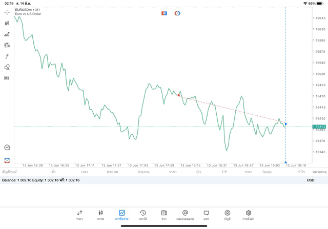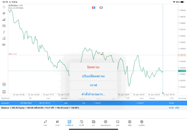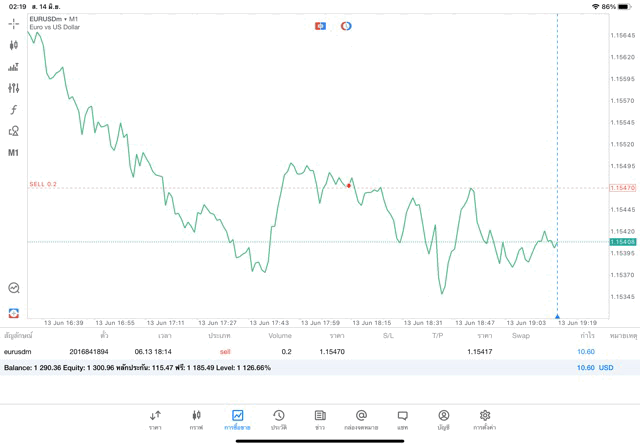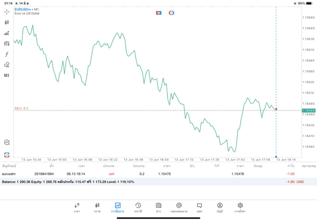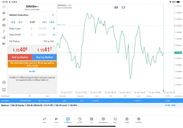 การเทรด Forex EURUSD 0.2 lot แอพ MT5