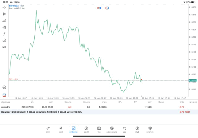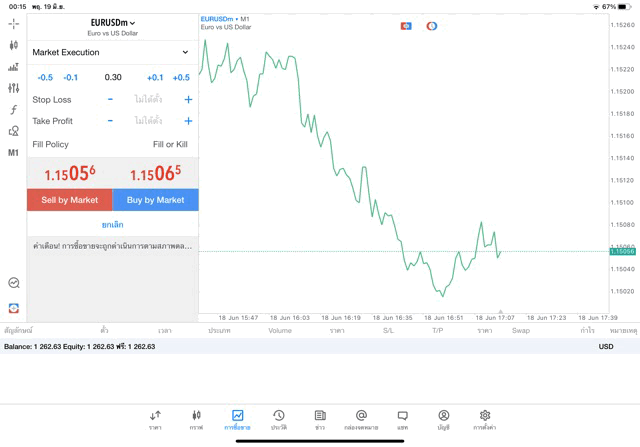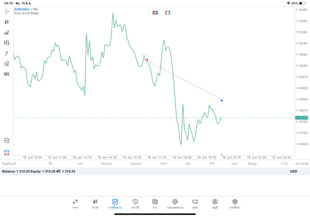 ติดลบก่อนนะ เริ่มแล้วการเทรด forex EURUSD บนแอพเล่นหุ้น MT5 เริ่มแล้ว เมื่อเวลาผ่านไปราคาเปลี่ยนแปลงจะเกิดผลกำไรหรือการขาดทุน