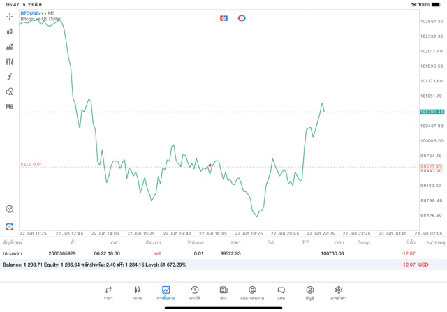 การเทรด Crypto BTCUSD 0.01 lot แอพ MT5