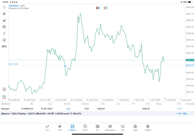 เริ่มแล้ว ติดลบก่อนนะ การเทรด Crypto ETHUSD บนแอพเล่นหุ้น mt5 exness เมื่อราคามีการเปลี่ยนแปลงจะส่งผลต่อกำไรหรือขาดทุนขึ้นกับการเทรดครั้งนี้