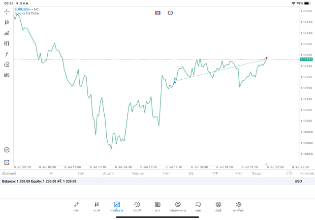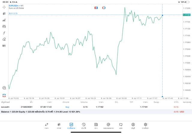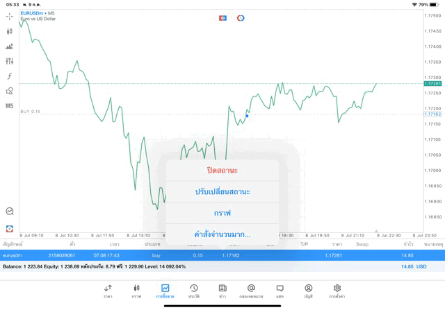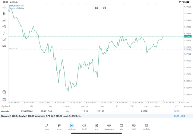 การเทรด Forex EURUSD 0.15 lot แอพ MT5