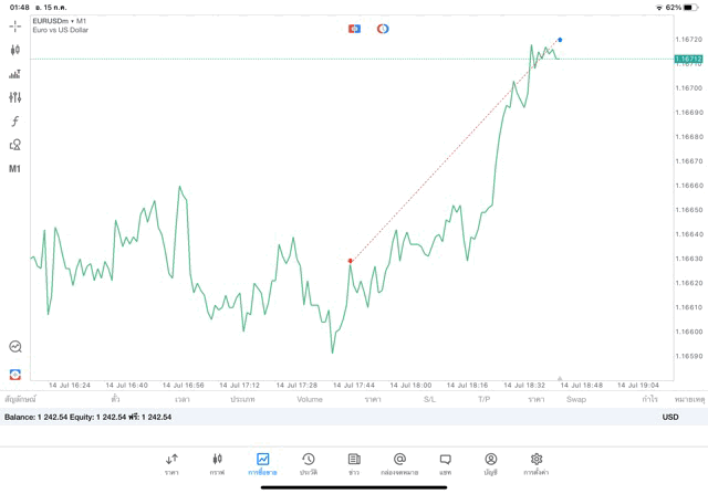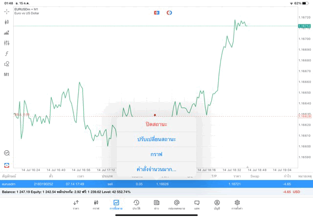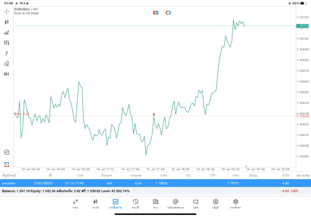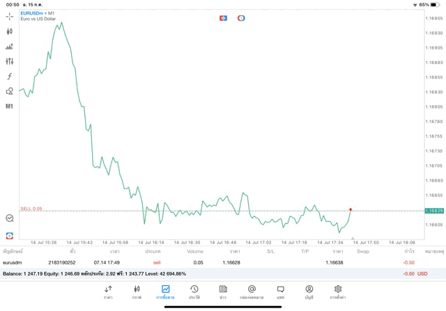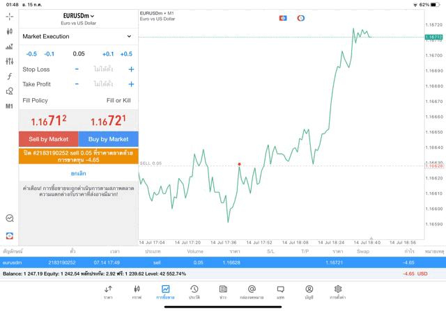 การเทรด Forex EURUSD 0.05 lot แอพ MT5