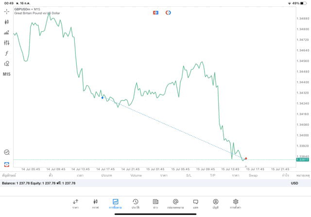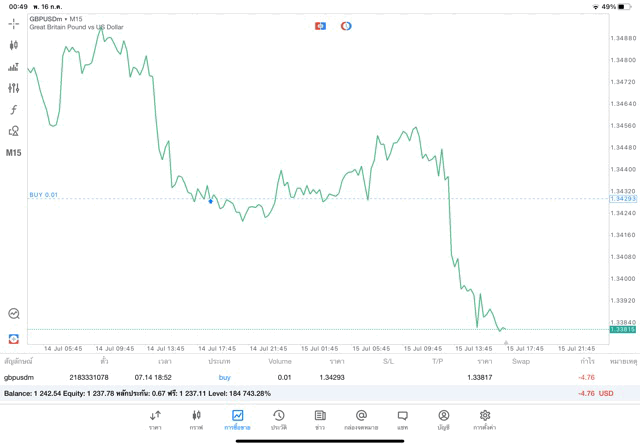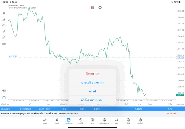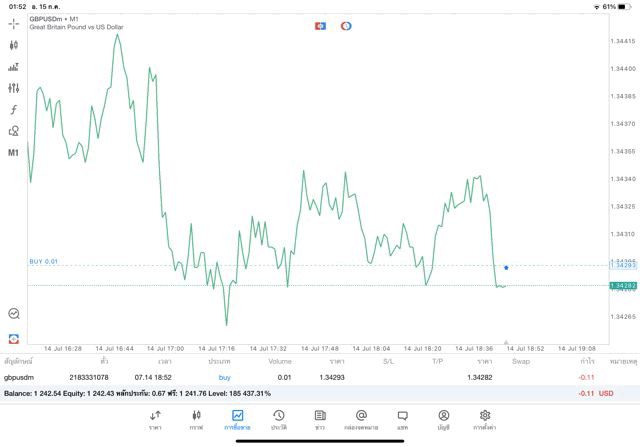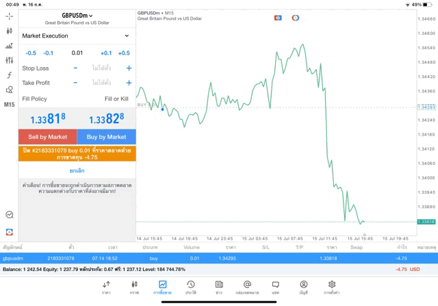 การเทรด Forex GBPUSD 0.01 lot แอพ mt5