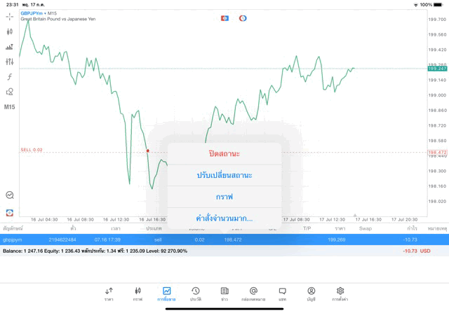 คลิ๊กค้างแล้วเลือกคำสั่ง ปิดสถานะ ปิดการซื้อขายครั้งนี้
