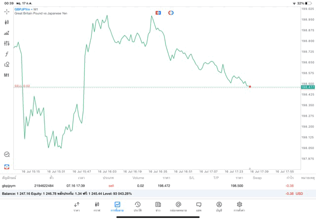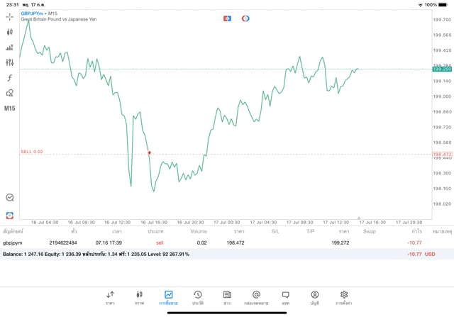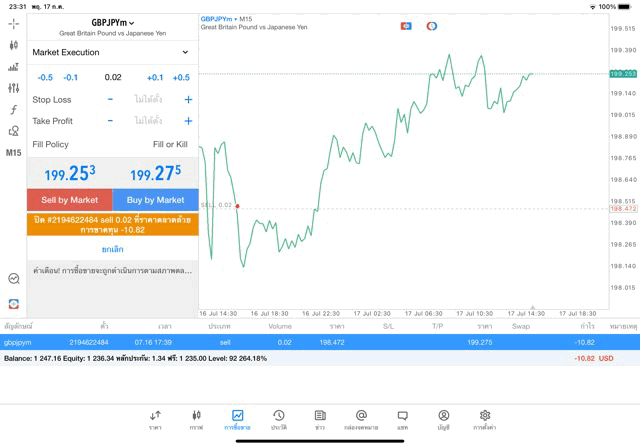 การเทรด Forex GBPJPY 0.02 lot แอพ MT5