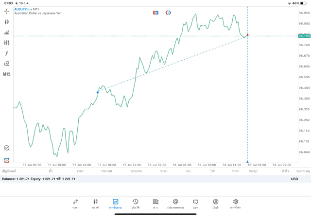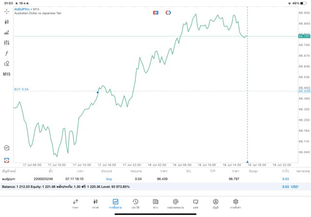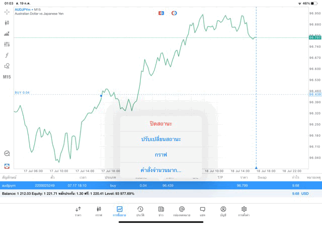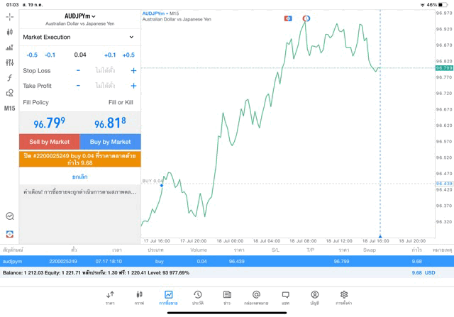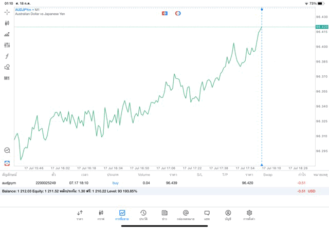 การเทรด Forex AUDJPY 0.04 lot แอพ mt5