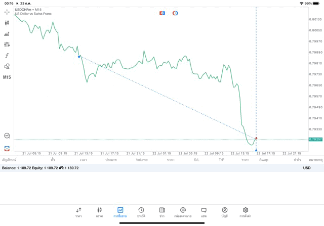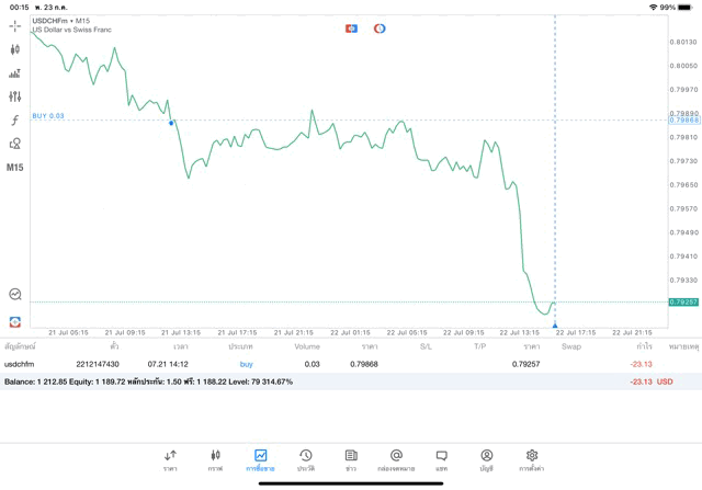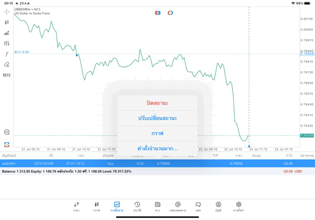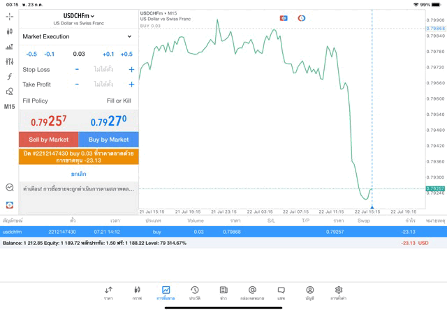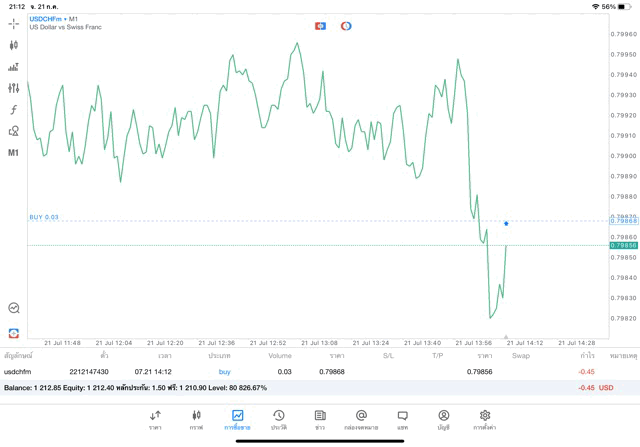 การเทรด Forex USDCHF 0.03 lot แอพ MT5