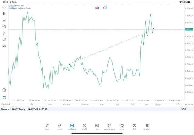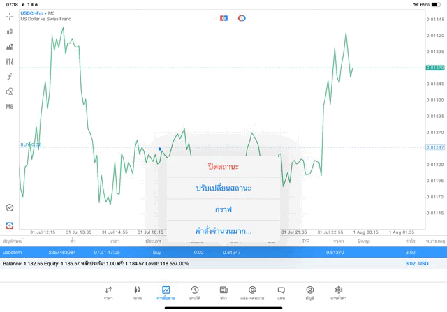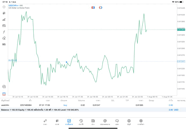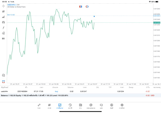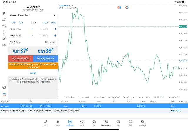 การเทรด Forex USDCHF 0.02 lot แอพ MT5