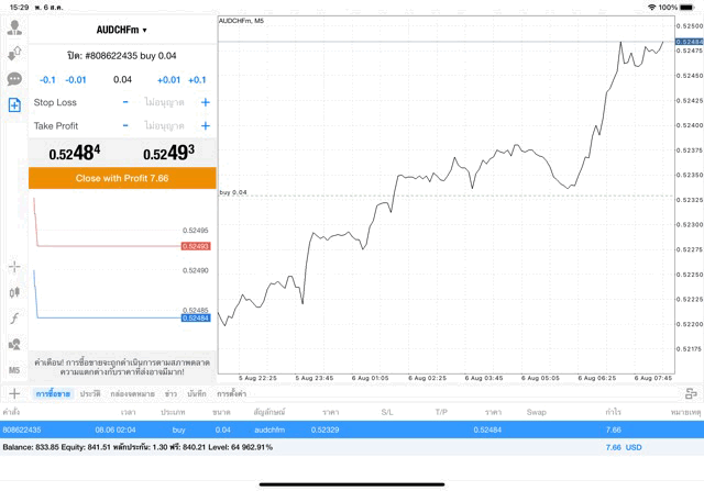 การเทรด Forex AUDCHF 0.04 lot แอพ MT4 exness