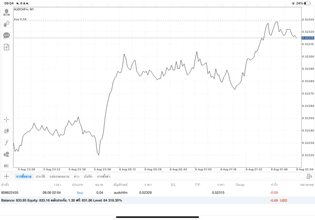 ติดลบก่อนนะ เริ่มแล้วการเทรด forex AUDCHF เมื่อเวลาผ่านไปราคาเปลี่ยนแปลงจะเกิดผลกำไรหรือการขาดทุนขึ้น.