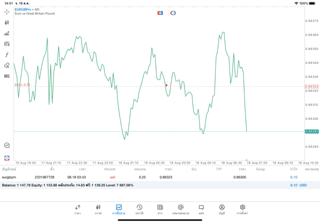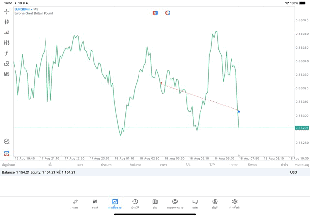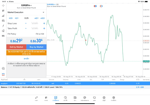 การเทรด Forex EURGBP 0.25lot แอพ MT5