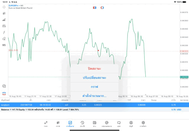 คลิ๊กค้าง แล้วเลือกคำสั่ง ปิดสถานะ ปิดการซื้อขายครั้งนี้