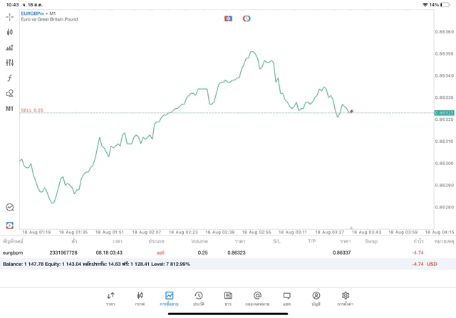 ติดลบก่อนนะ เริ่มแล้วการเทรด forex EURGBP เมื่อเวลาผ่านไปราคาเปลี่ยนแปลงจะเกิดผลกำไรหรือการขาดทุน