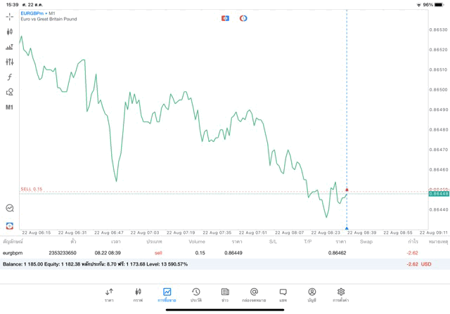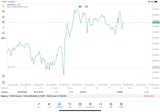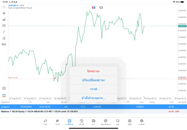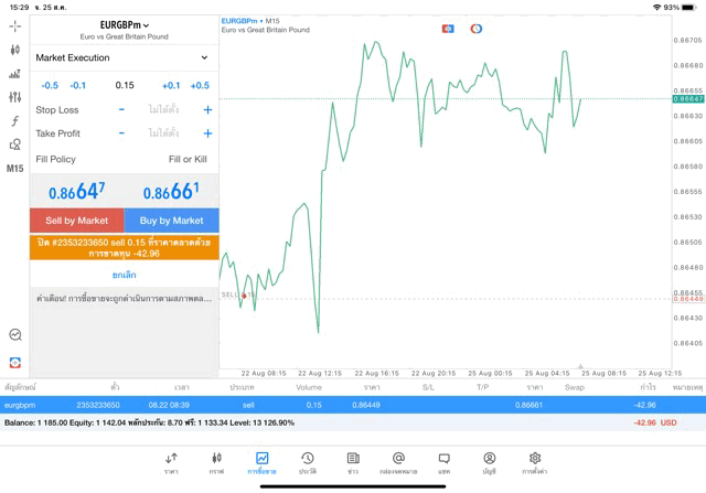 การเทรด Forex EURGBP 0.15 lot แอพ MT5