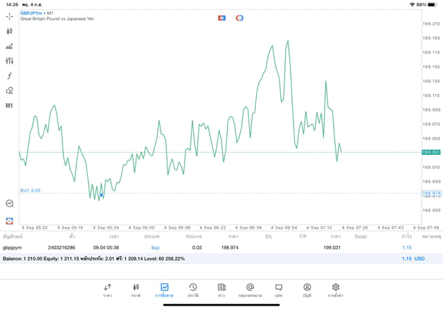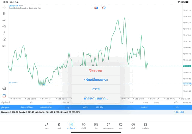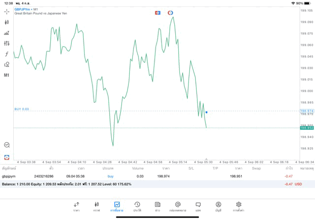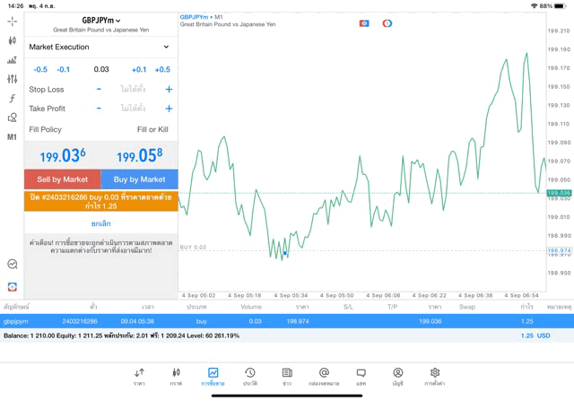 การเทรด Forex GBPJPY 0.03 lot แอพ MT5