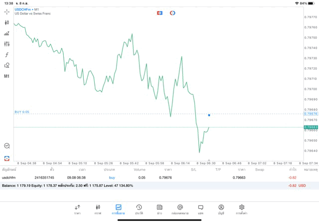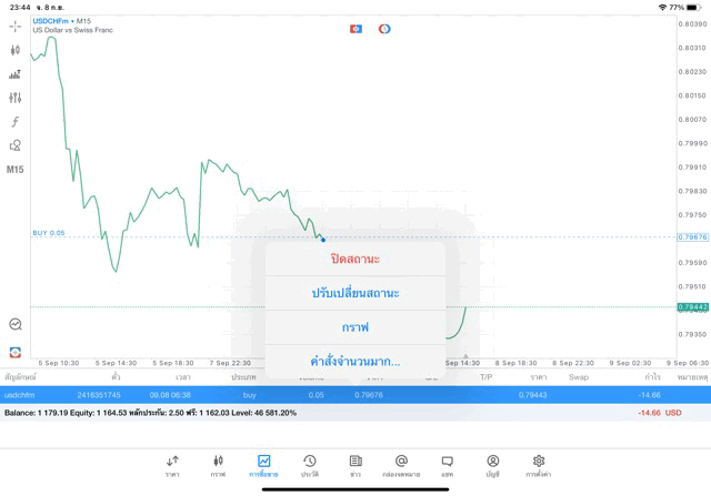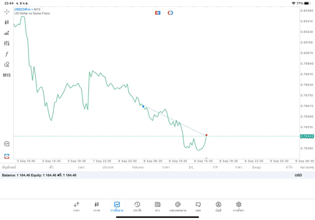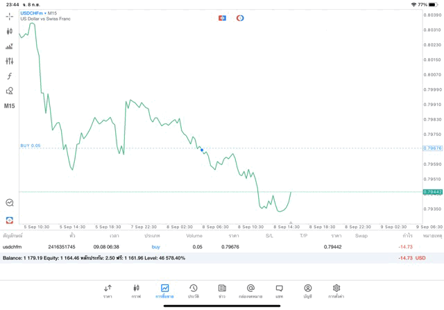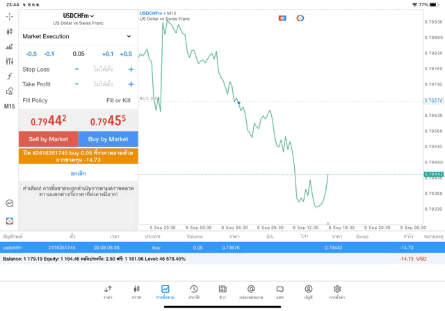 การเทรด Forex USDCHF 0.05 lot แอพ MT5
