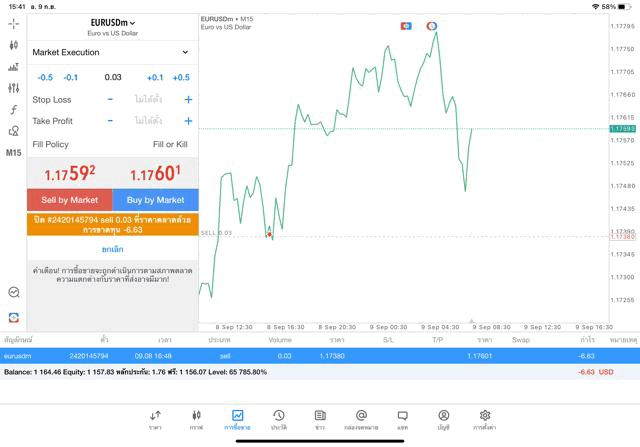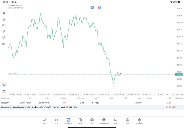 การเทรด Forex EURUSD 0.03 lot แอพ MT5