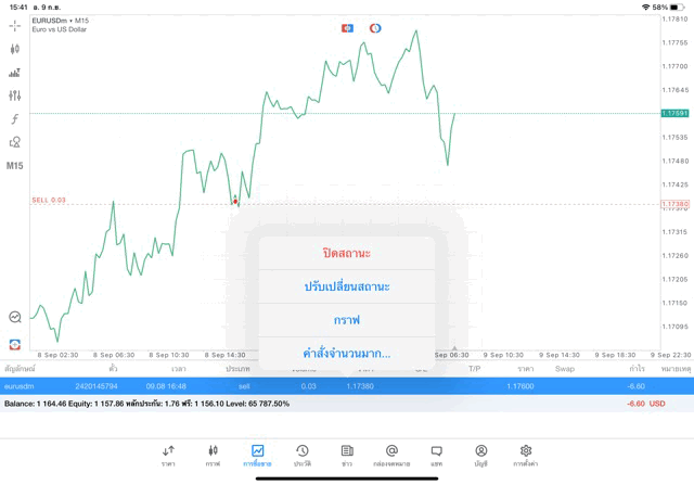 คลิ๊กค้างแล้วเลือกคำสั่ง ปิดสถานะ ปิดการซื้อขายครั้งนี้