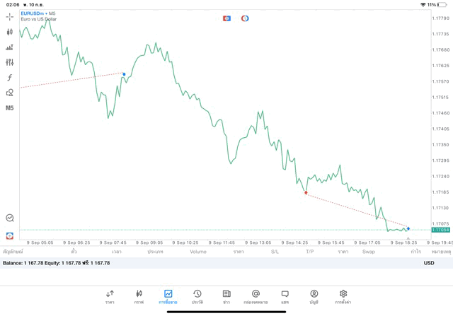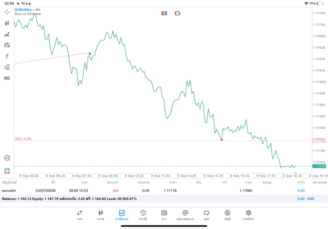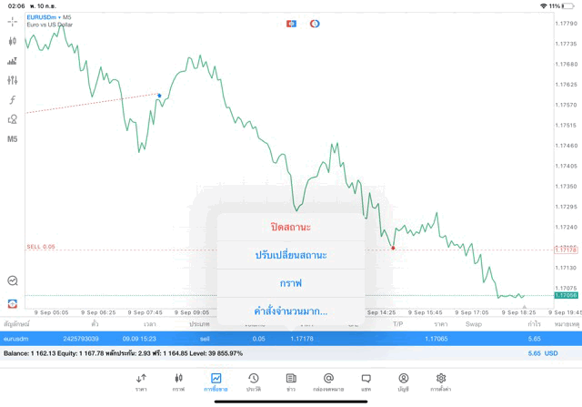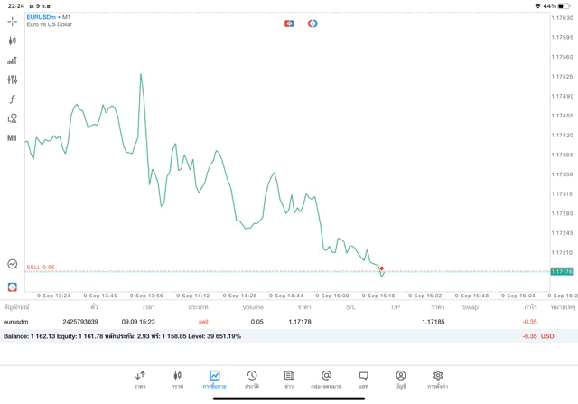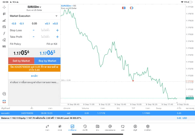 การเทรด Forex EURUSD 0.05 lot แอพ MT5