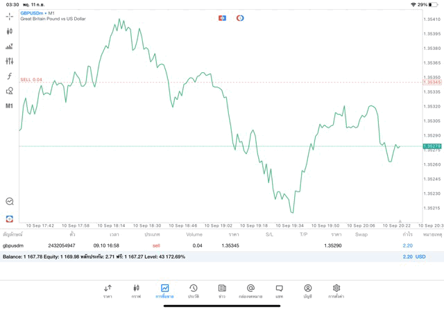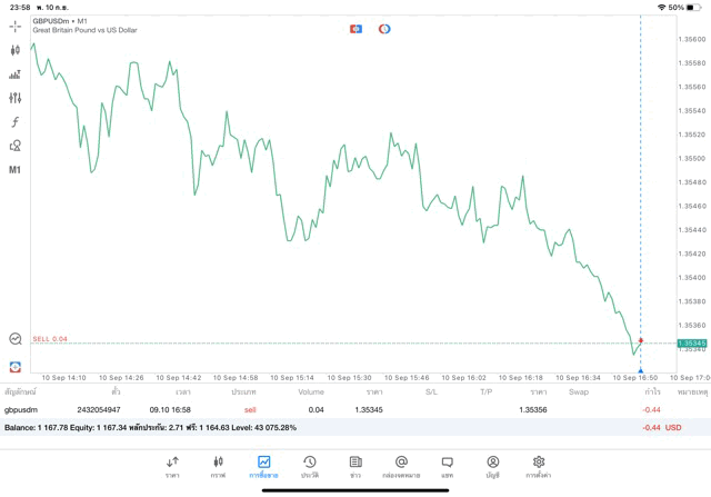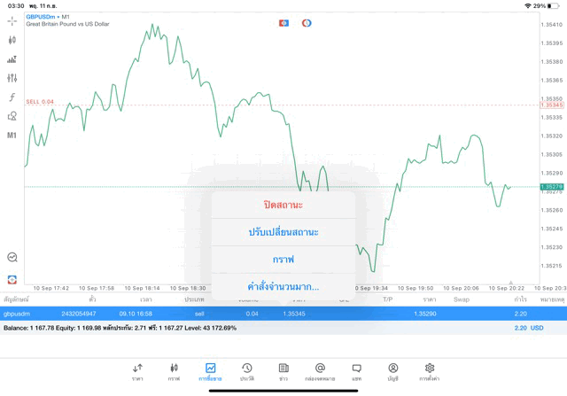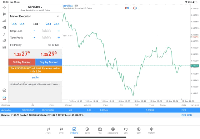 การเทรด Forex GBPUSD 0.04 lot แอพ mt5