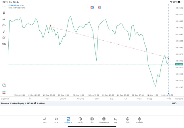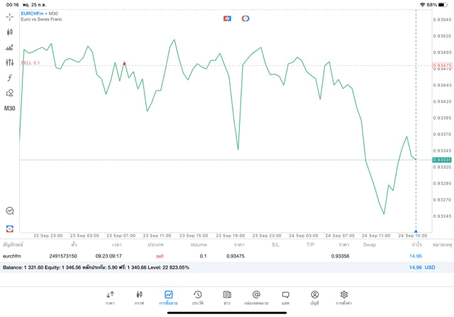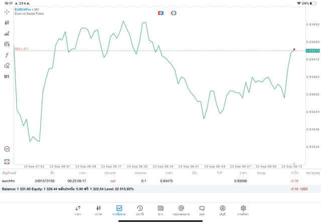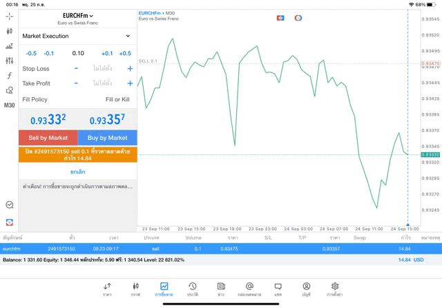 การเทรด Forex EURCHF 0.1 lot แอพ MT5
