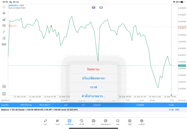 คลิ๊กค้าง แล้วเลือกคำสั่ง ปิดสถานะ ปิดการซื้อขายครั้งนี้
